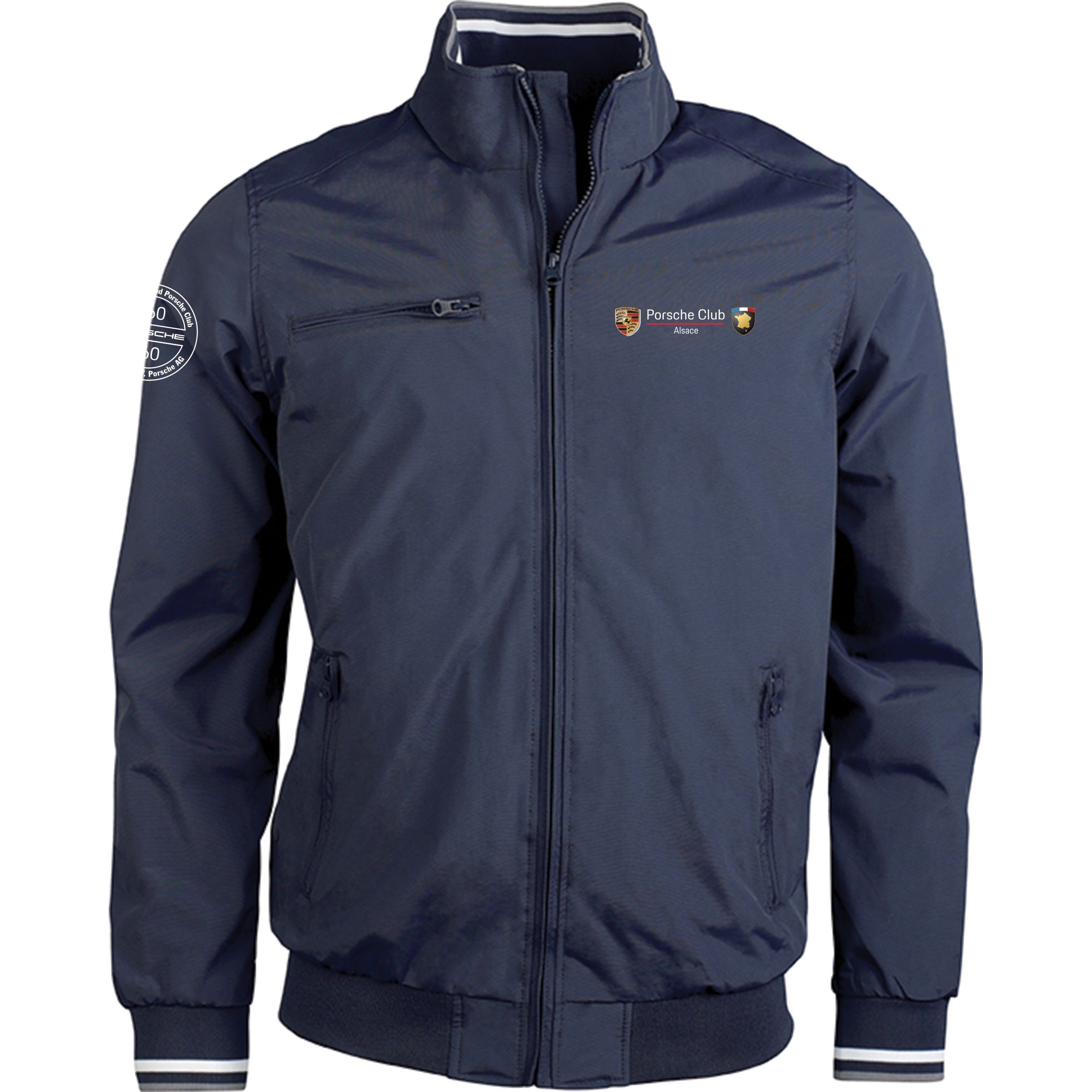 70% coton / 30% polyester. Molleton gratté 3 fils. Manches montées contrastées. Fermeture devant par boutons pression contrastés. Bord-côte avec 2 liserés contrastés au col, manches et bas de vêtement. 2 poches passepoilées contrastées devant. Bande de propreté en chevron et boucle d'accrochage à l'intérieur col.Personnalisé en broderie à l'unité