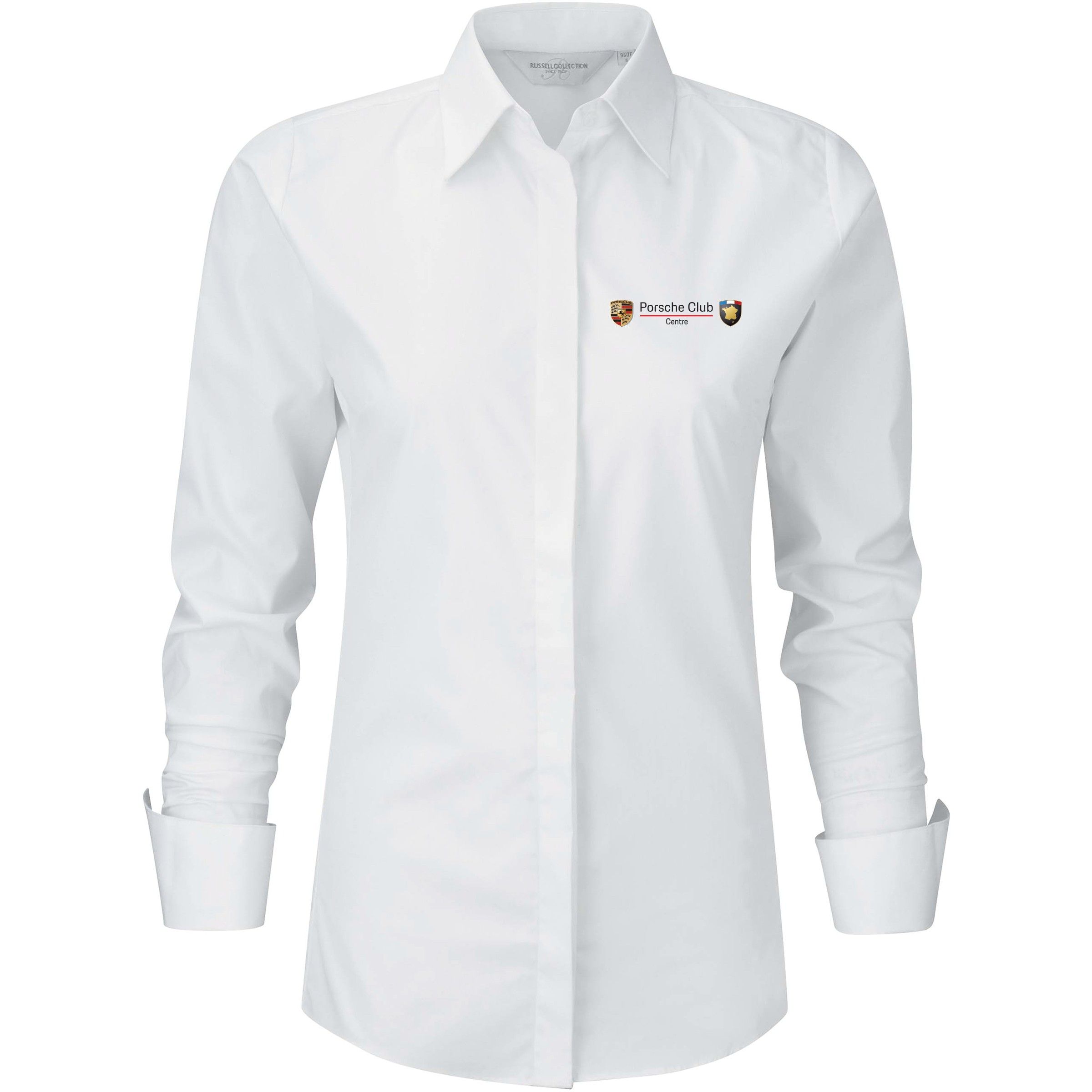 75% coton / 25% élastomultiester (fibre Lycra® T400). Cette nouvelle fibre apporte confort, élasticité, tenue durable et gestion de l'humidité. Col semi-évasé et rabat court. Patte de boutonnage étroite. Pinces au dos. Manchettes carrées avec option boutons de manchette. Coupe ajustée. Personnalisé en broderie à l'unité