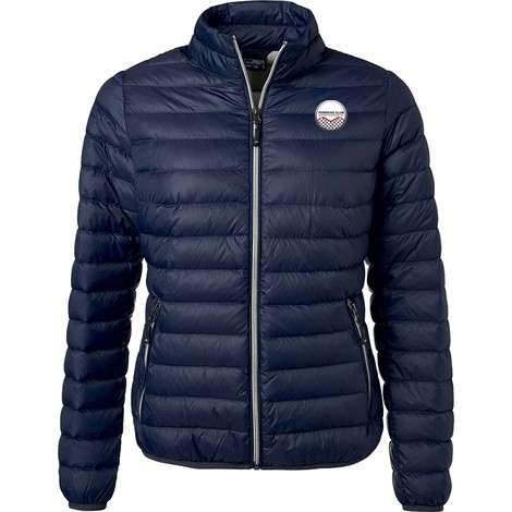Veste matelassée Femme Col montant Fermeture zippée contrastée 2 poches latérales zippées Coupe ajustée Coupe vent et déperlant 100% polyamide Rembourrage : 90 % duvet 10 % plumes